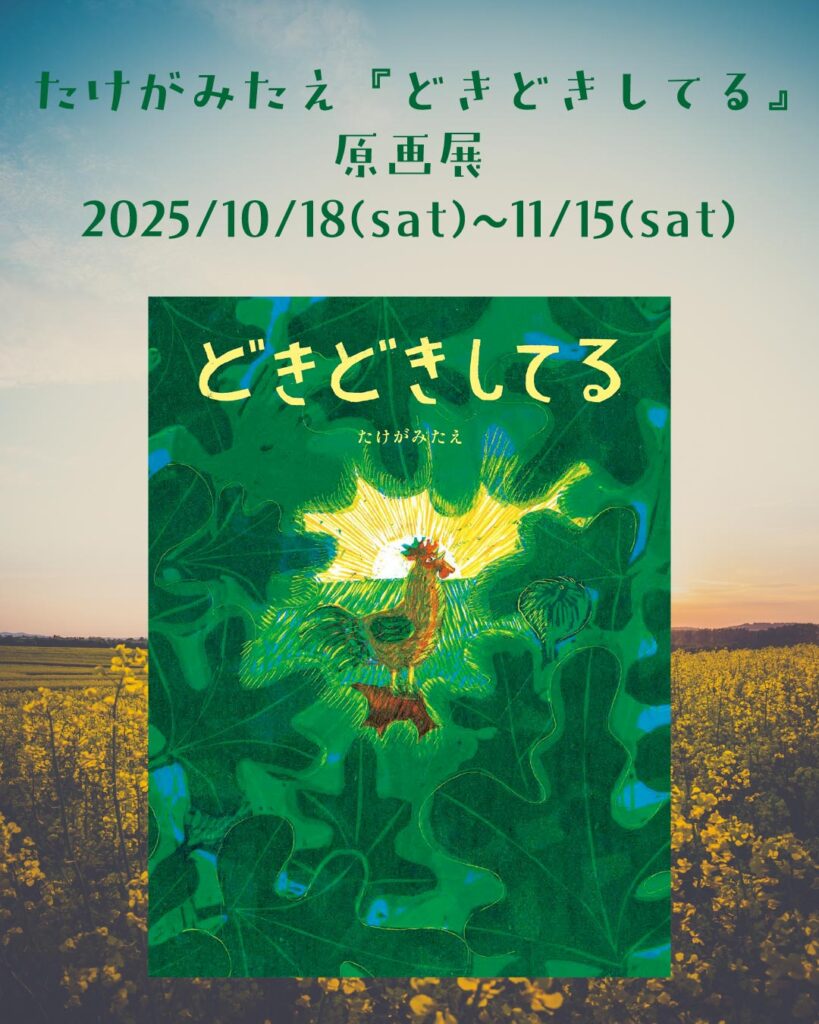 木版画を中心に作品の制作活動やワークショップなどを活発に行っているたけがみたえさんの最新作にして最高傑作の『どきどきしてる』の原画展を開催します。原画ならではの迫力を観て、生きている喜びを大いに感じて欲しいと思います。