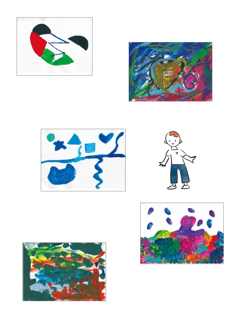 「感じたことを1本の線で表現してみよう」そうして生まれた構図に今度は「自分の好きな色だけで気持ちよく塗ってみよう。」